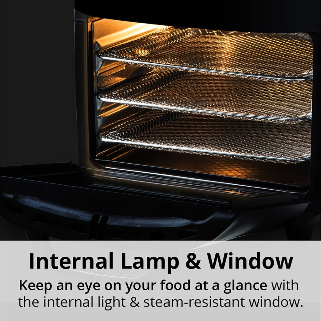 - 10 QT. CAPACITY: Can fit 12 in. pizzas, and the steam resistant window and bright internal lamp let you see the food while it''s cooking