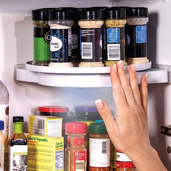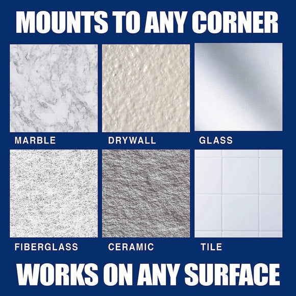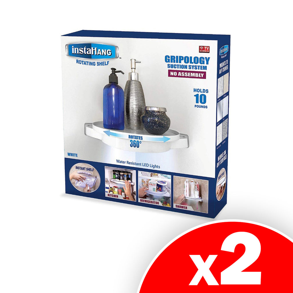 Keep organized with the Instahang rotating shelf for double the space! It's so strong, it can hold a 10 lb. iron! Reuse it anywhere. No tools, zero installation, will mount on any surface with the push of a handle. Works on any surface including tile, glass, marble, and drywall. The Polymer grip pads holds securely to your wall without damaging it. Rotates 360, mounts to any corner, works on any surface, showers, kitchen, refrigerator, vanity and its Mildew resistant. As Seen On TV InstaHang Organizational Multi-Use Rotating Shelf,