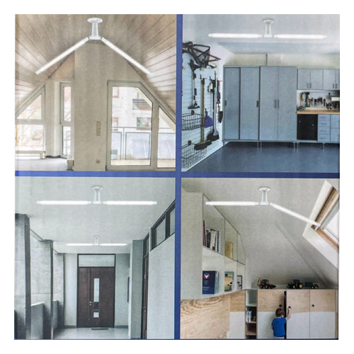 Powerful LEDs produce a brightness of 6000 lumens while only consuming 56W of electricity. LED's instantly illuminates to full light output without any start-up time Independently adjustable panels rotate up to 90 to focus light where needed. Energizing crisp Daylight color illuminates fine details with invigorating cool light. High output light ideal for garages or attics. This light comes with dual independently adjustable panels that rotate up to 90 to direct light exactly where desired. Integrated LEDs produce 6000 lumen and last up to 50,000 hours delivering bright, reliable illumination.
