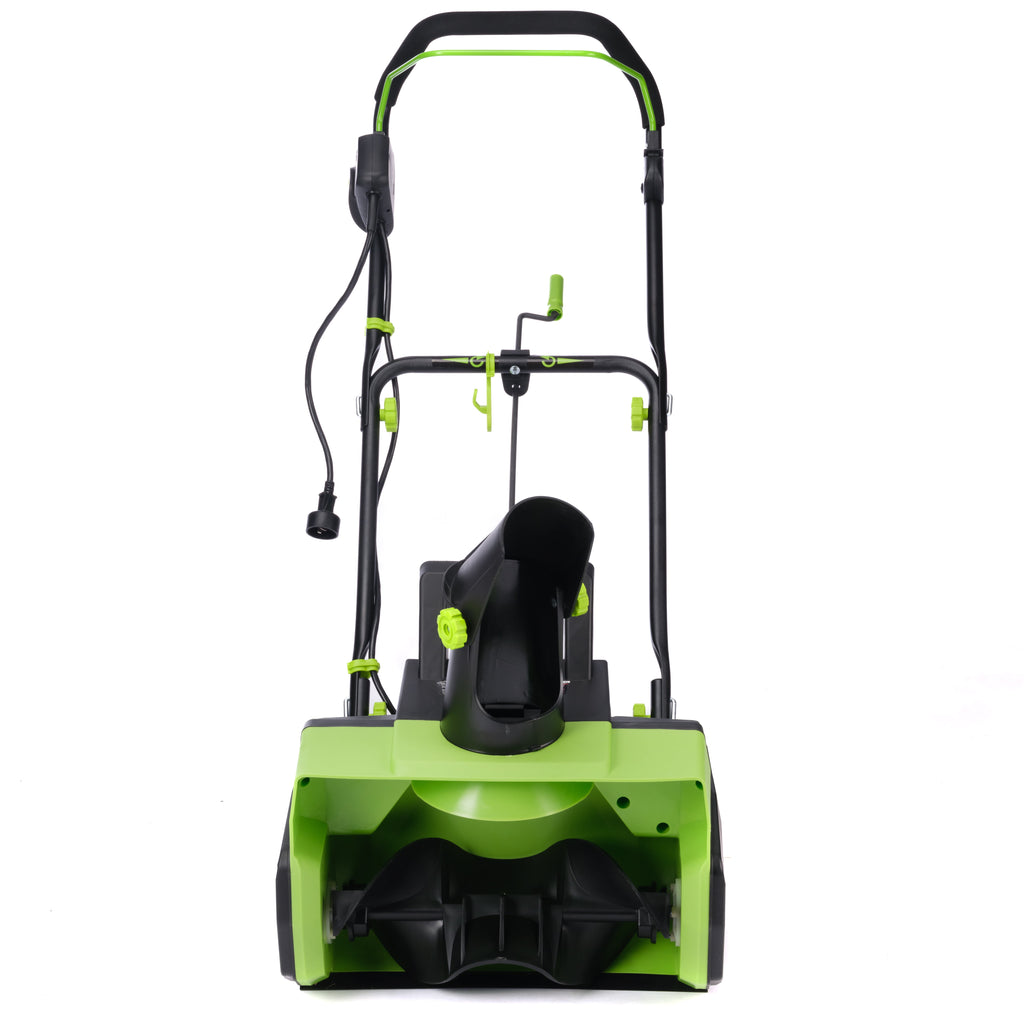 - An electric snow blower with 18" snow clearing width, 12" snow cleaning depth, and 30'' snow throwing distance