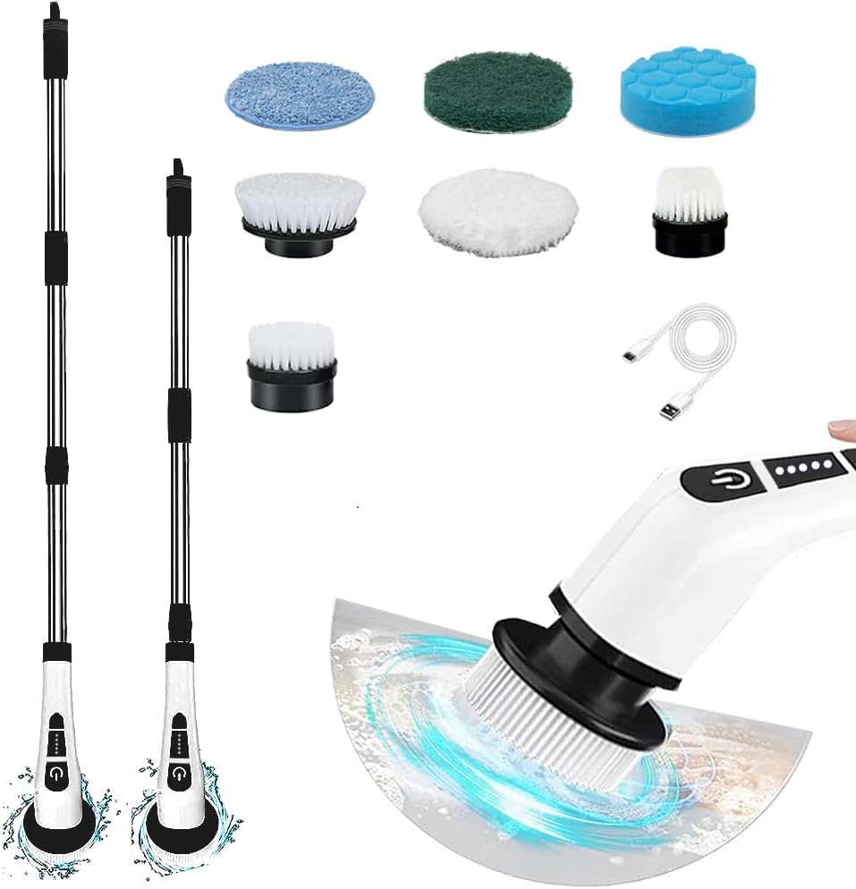 - 7 Replaceable Brush Heads:The electric spin scrubber is equipped with 7 replaceable brushes, each designed for a certain range of deep cleaning. Small flat brushes are used for fine node work, while large flat brushes are used for floors and showers, door frames, tiles, and window frames; Wide range brushes for cleaning bathtubs and toilets; Sponge sheets for tables; Cloth and wool cloth used for cleaning car windows;Hard sponge is only suitable for heavy oil stains and some stainless steel surfaces