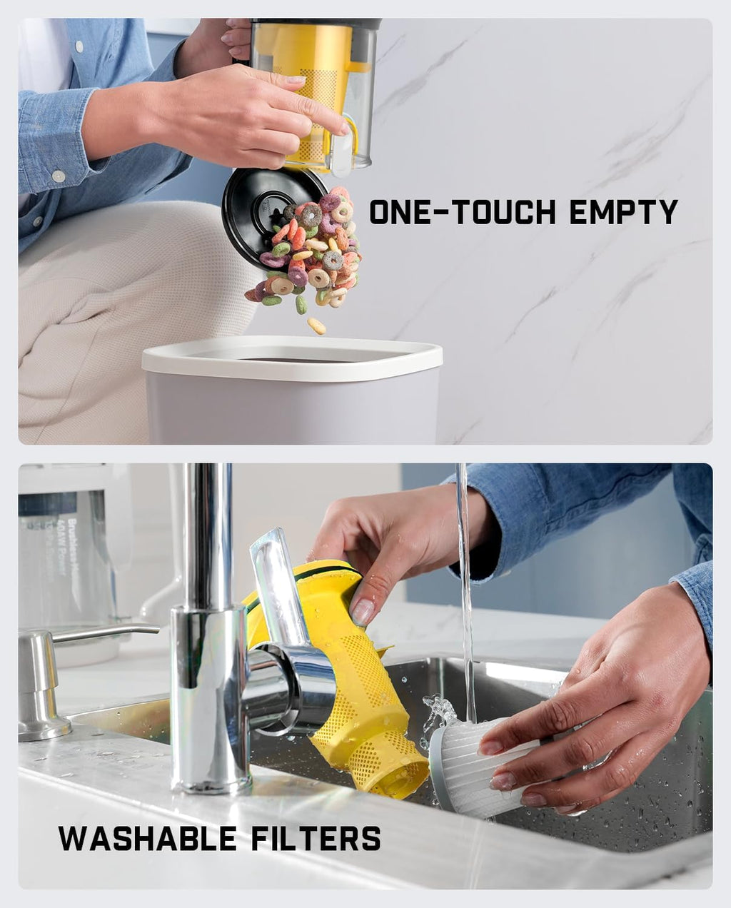- XL Dust Cup & One-Touch Empty: 600 mL high capacity dustbin means more cleaning and less emptying. For more convenience, you can eject dirt and debris with one touch-not getting your hands dirty. Combined with its cordless and lightweight design, this portable handheld vacuum can be easily moved from here to there, making your deep cleaning efficient and hassle-free