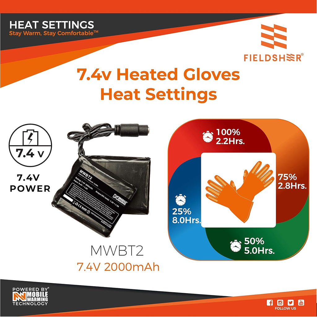 - LONG WARMING WITH BLUETOOTH-ENABLED APP: Heat in seconds with 7.4V Split-Pack Batteries to Reduce Wrist Weight. Up to 8 Hours of Heat Per Charge.
