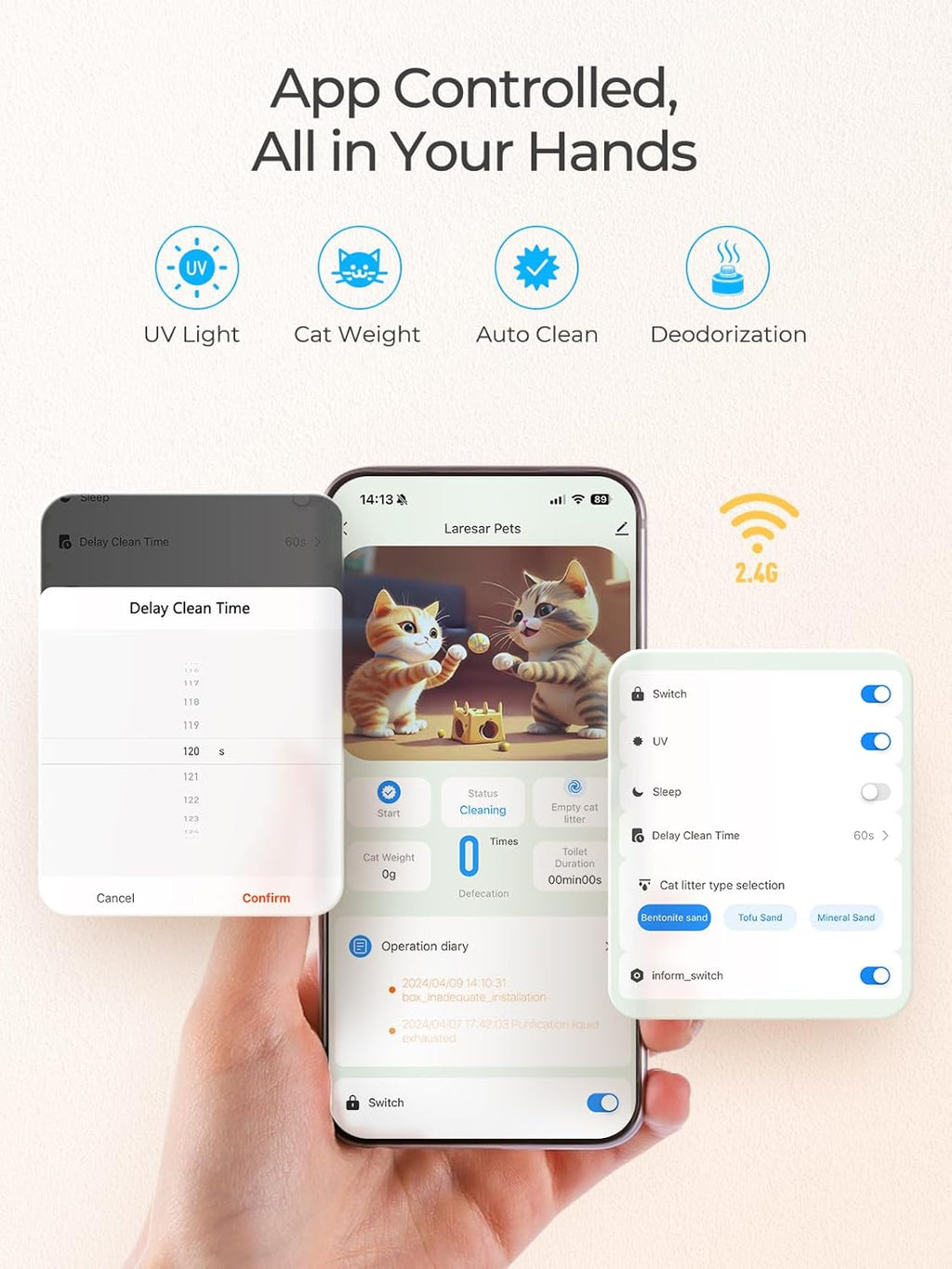 - With easy APP connectivity, users can monitor and manage their litter box remotely, offering convenience and enhanced pet care at their fingertips.
