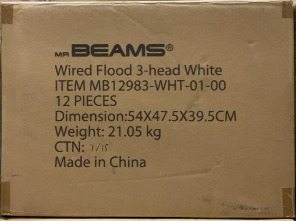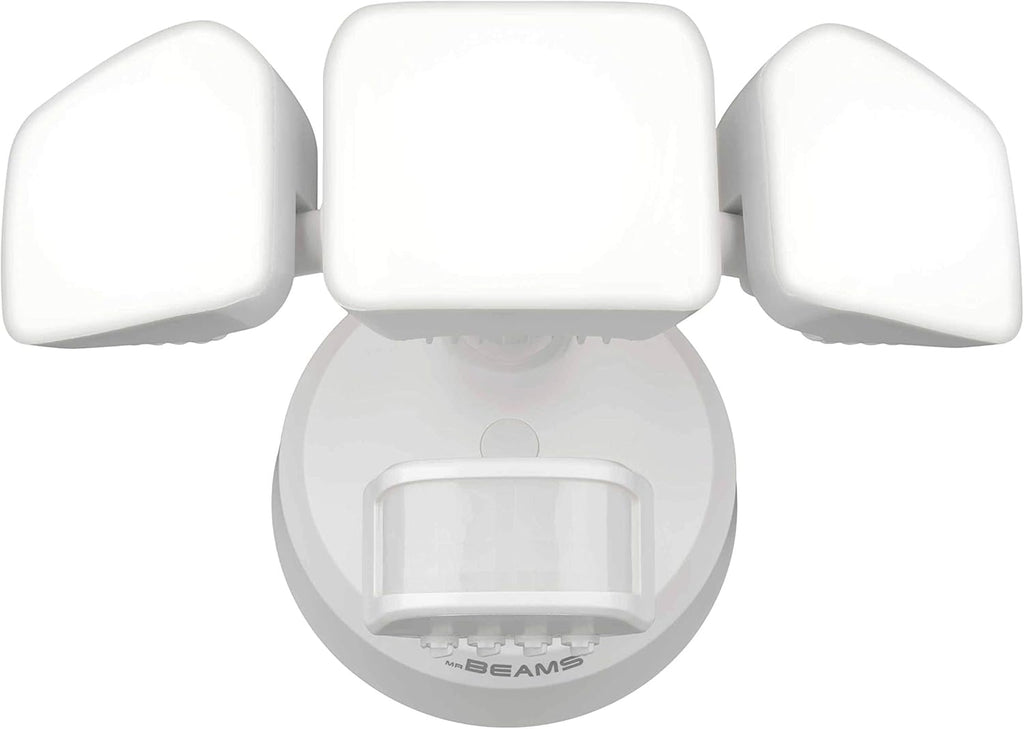 Mr Beams Wired Pro 3-Head Motion Security Light provides powerful home security lighting in traditional areas around the home with innovative new features. The spotlights three heads provide a combined 3900 lumens of motion-activated light in areas like garages, decks, eaves and any other area to mount to an existing junction box. Four lighting modes address a variety of lighting needs, including Auto Mode for motion activation; On Mode for activation through the home light switch; D2D Mode for continuous dusk-to-dawn activation; and Test Mode for adjusted settings to test the light during setup. Adjustable motion detection, auto shut off and light sensitivity settings allow for customizable home security lighting. Equivalent to 290 watts. Mr Beams Pro 3-Head Motion Security Light comes with a standard one-year against defects, which can be extended to two years with product registration at mrbeams /register.