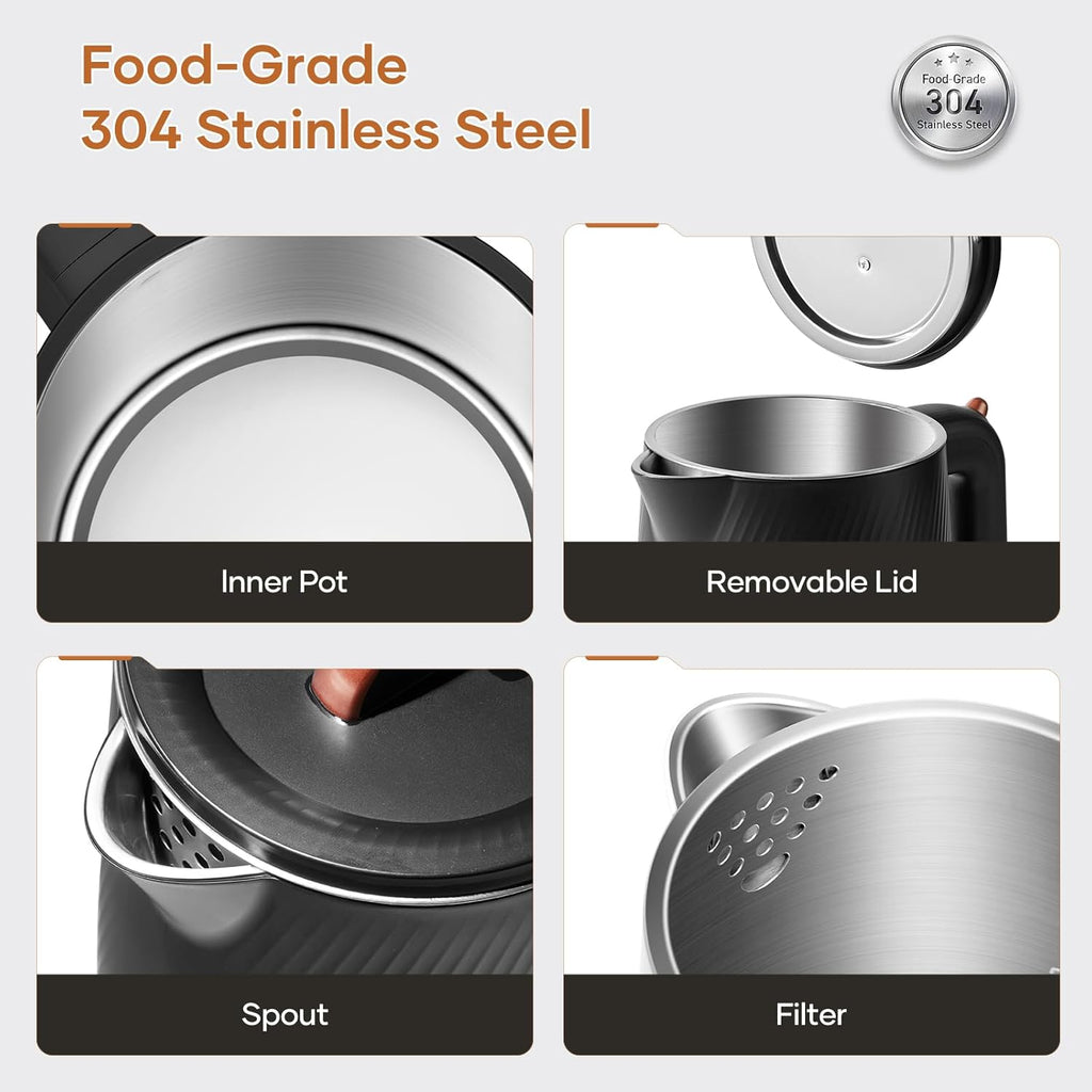- Sleek, Stylish & Easy-to-Clean Featuring a modern, minimalist design that fits beautifully in any kitchen, this kettle combines elegance with practicality. Plus, its detachable lid makes cleaning effortless, so your kettle stays as spotless as the day you bought it.