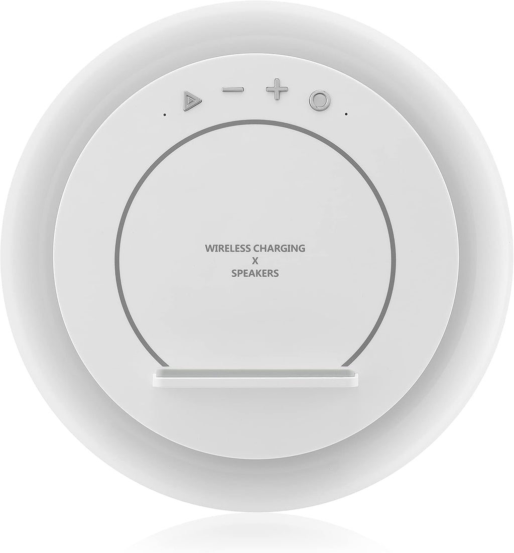 - MODERN TOUCH: The Qi wireless charger speaker lamp is made from ABS plastic with a matte white finish. This Bluetooth lamp will refresh any interior and appeal to men and women of all ages.