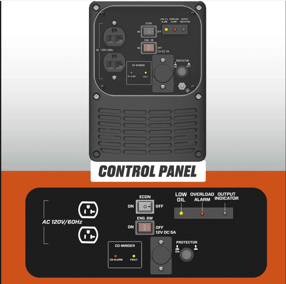 - CO Detector: The generator is equipped with a CO detector & automatic shut-off system to reduce the risk of carbon monoxide poisoning.