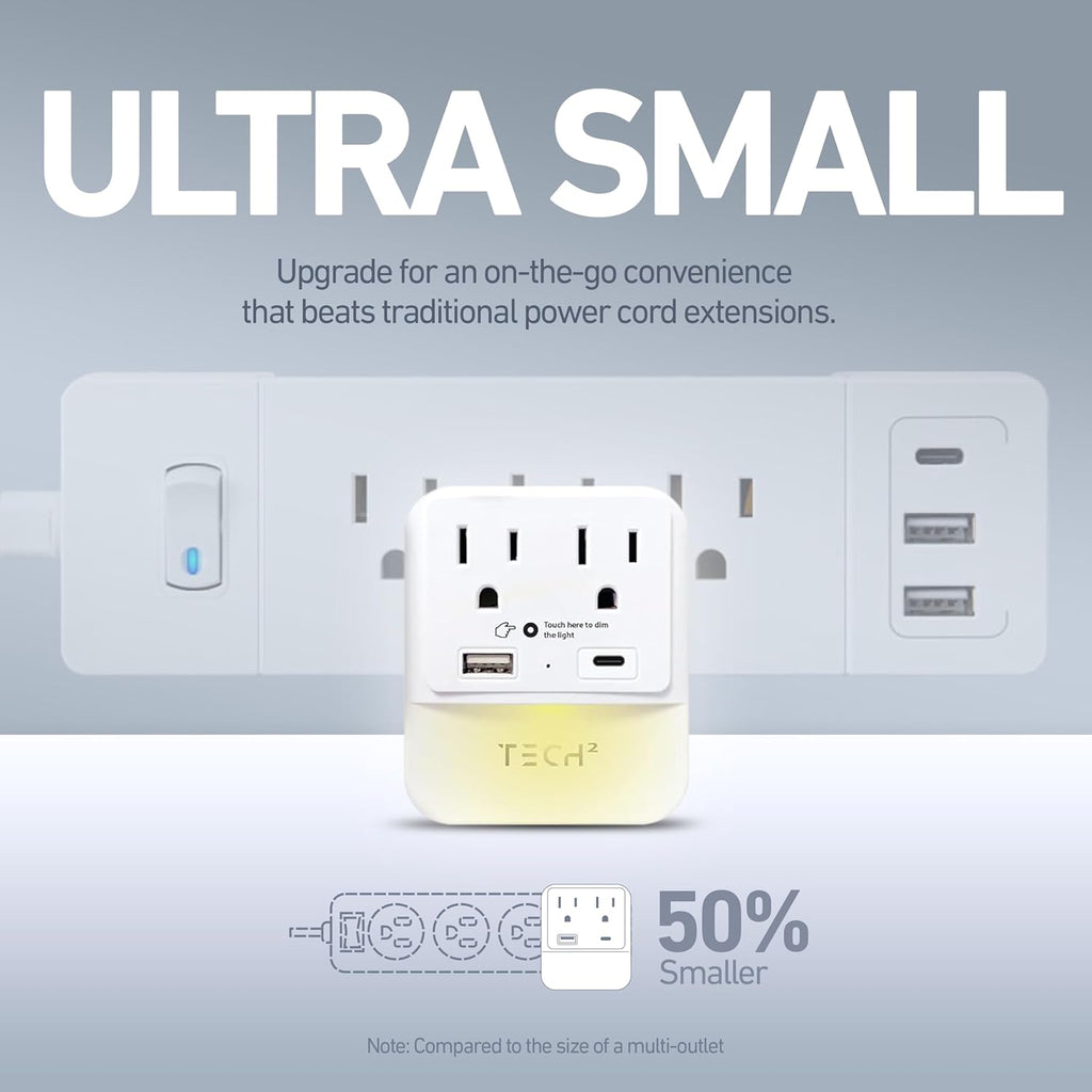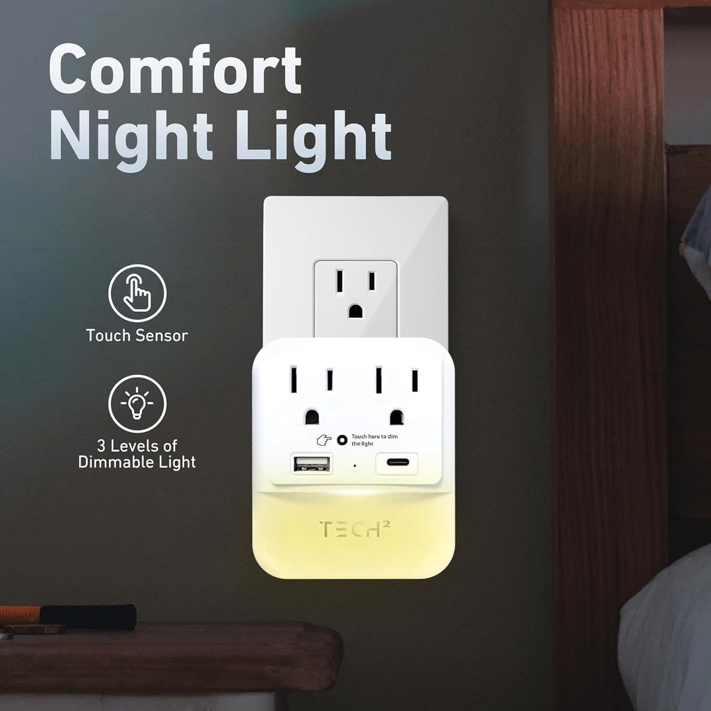 - Versatile Outlet Splitter with Night Light: Transforms a single wall outlet multiplier into a multi-functional hub with 6 A/C power sources & 2 USB ports, 1 USB-C (1875W)15A in total, making it easy to power several devices simultaneously.