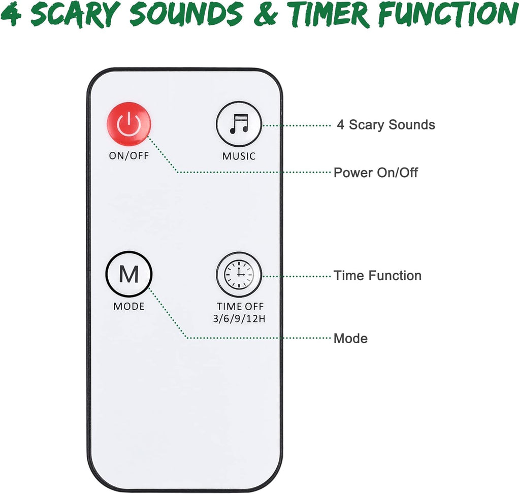- [4 Types of Sound & Timing Settings]: Comes with 4 different sound settings, including Halloween ghost scream, spider scream, demonic roaring, or horror sigh to create a different mood for different events, along with 3,6,9,12 hrs timing settings allowing you to choose the lighting time according to your needs, helping you save power when not in use